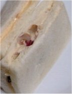 写真左はベーグルにプレーンなクリームチーズとスモークサーモンなどをはさんで作ったサンドイッチです。 写真右は「ジュエリーボックスクリームチーズ」をはさんだサンドイッチ。ちなみに左にちょっと写っているのは我が家の近所のパン屋手製のピーナッツクリームをはさんだサンドイッチです。 | |